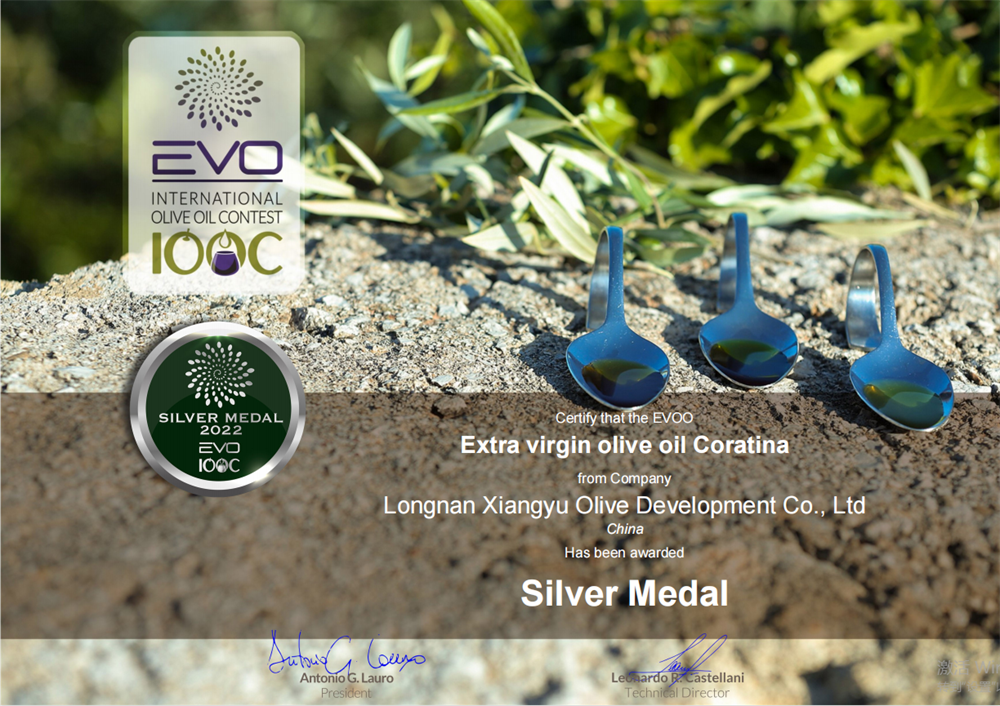 隴南市祥宇油橄欖開發(fā)有限責(zé)任公司選送的“祥宇牌”特級初榨橄欖油在本次大賽中榮獲一金一銀兩枚獎牌。